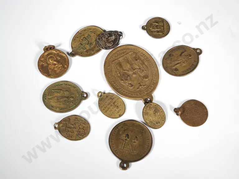 A Lot of Twelve Assorted Metal Religious Medals. Estimate: $40 - $80