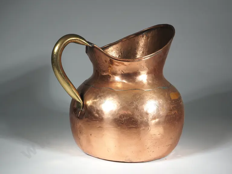 Large Bulbous Copper Jug with Brass Handle Estimate: $40 - $80