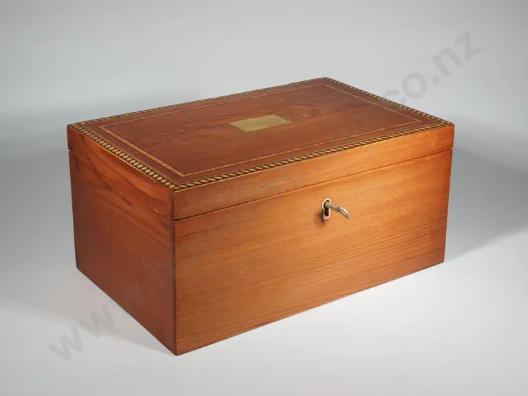 Inlaid Jewellery Box With Fitted Interior & Square Brass Cartouche Estimate: $100 - $150