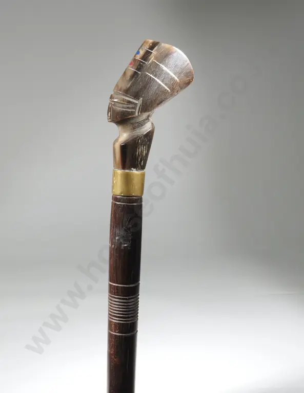 Early 20th Century Walking Stick with Ebony Shaft & Horn Handle In The Form Of A Pharoah's Head Estimate: $100 - $200