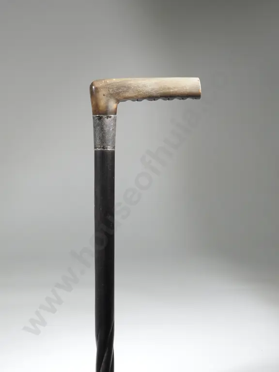 Twisted Ebony Cane with Horn Handle & Silver Ferrall. Estimate: $100 - $200