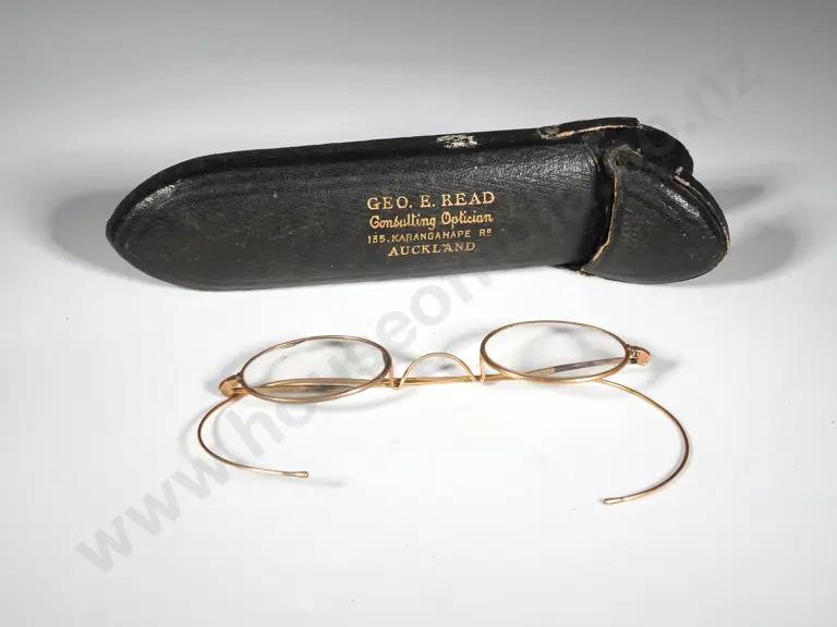 Antique Glasses w Rolled Gold Frame & Original Leather Case.