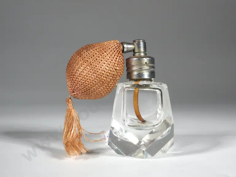 Vintage 1930s Clear Glass Perfume Atomiser w Silver Cap