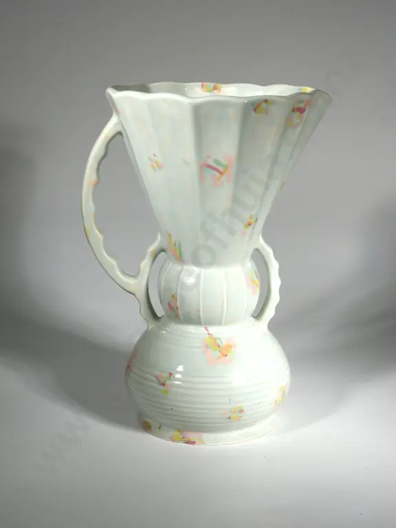 Art Deco Style Jardinere with Pink Body That Fade Into a Green Base & with Handles.