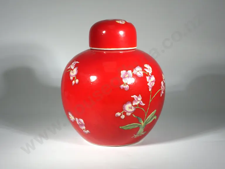 Large Red Ground Ginger Jar Decorated with Orchids