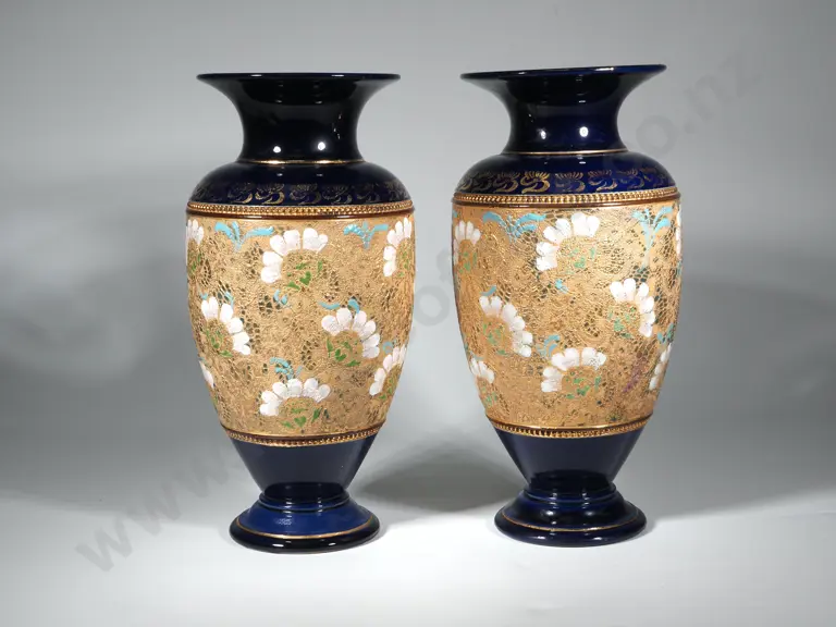 Two 19th Century Royal Doulton Lace Work Decorated Vases