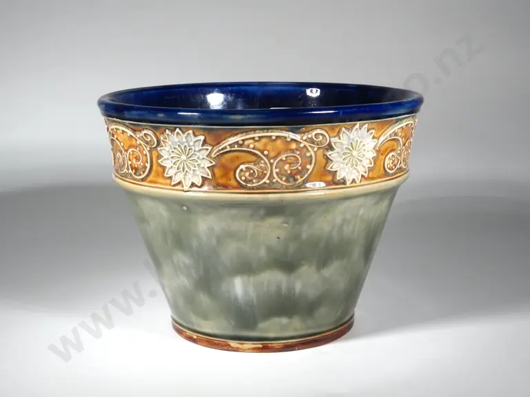 Royal Doulton Glazed Stoneware Jardinere With Colbalt blue Rim Estimate: $200 - $300