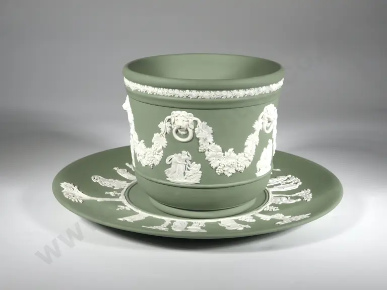 Wedgwood Green Jasperware Jardinere & Plate Estimate: $40 - $80