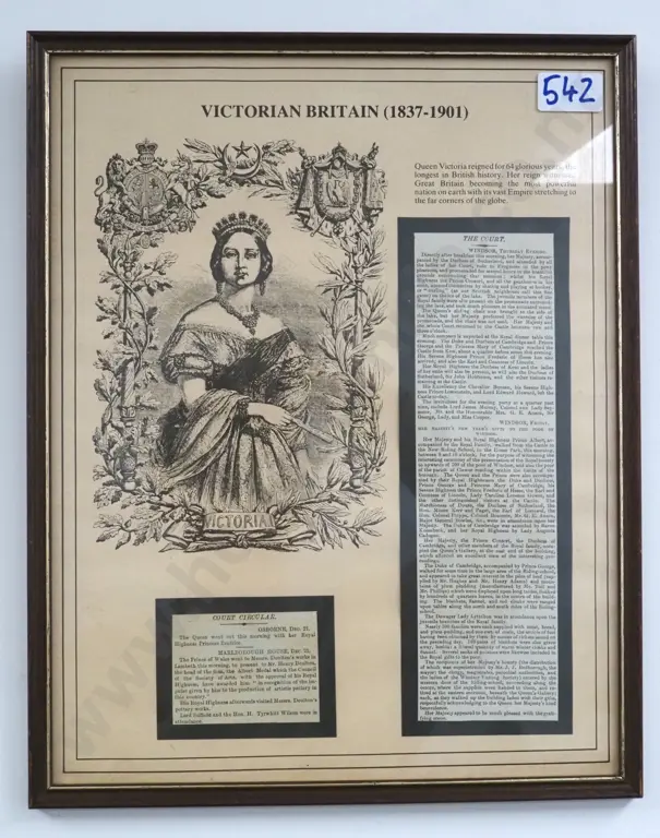 Queen Victoria Poster w Original 'Court Circular' & 'The Court Clippings'.