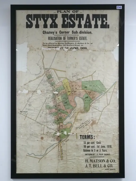 Framed Plan of Styx Estate. 1909