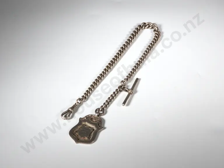Sterling Silver Watch Chain with T Bar & Medallion Estimate: $120 - $180