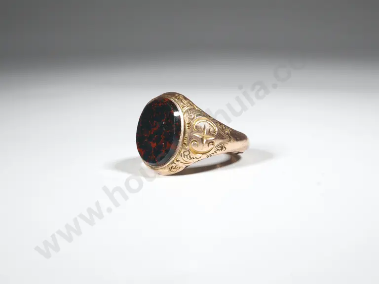 9ct Gold Antique Engraved Bloodstone Signet Ring Estimate: $300 - $500