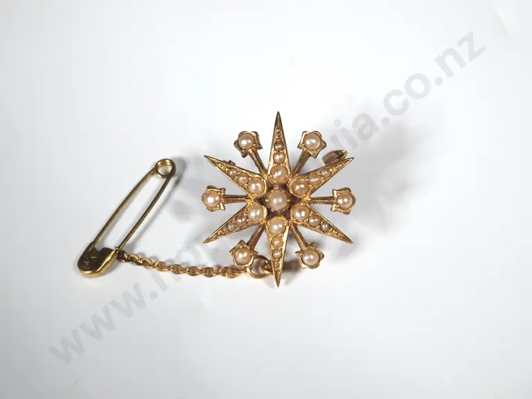 15ct Gold Edwardian Starburst Seed Pearl Brooch Estimate: $400 - $600