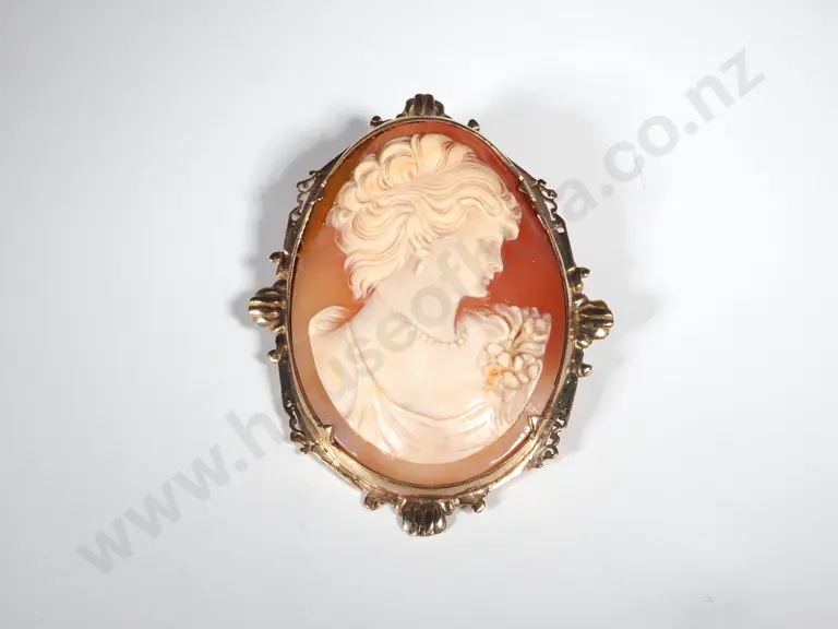 9ct Gold Large Cameo Brooch of Female Profile in Evening Wear Estimate: $200 - $300