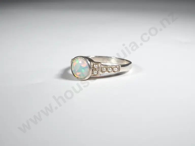 Sterling Silver Crystal Opal & Seed Pearl Ring Estimate: $50 - $100