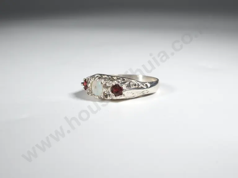 Sterling Silver Opal, Garnet & Diamond Ring Estimate: $50 - $100