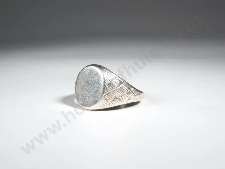 Gentlemans Sterling Silver Signet Ring w Woven Detailing Estimate: $40 - $80