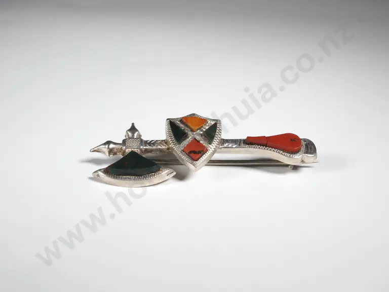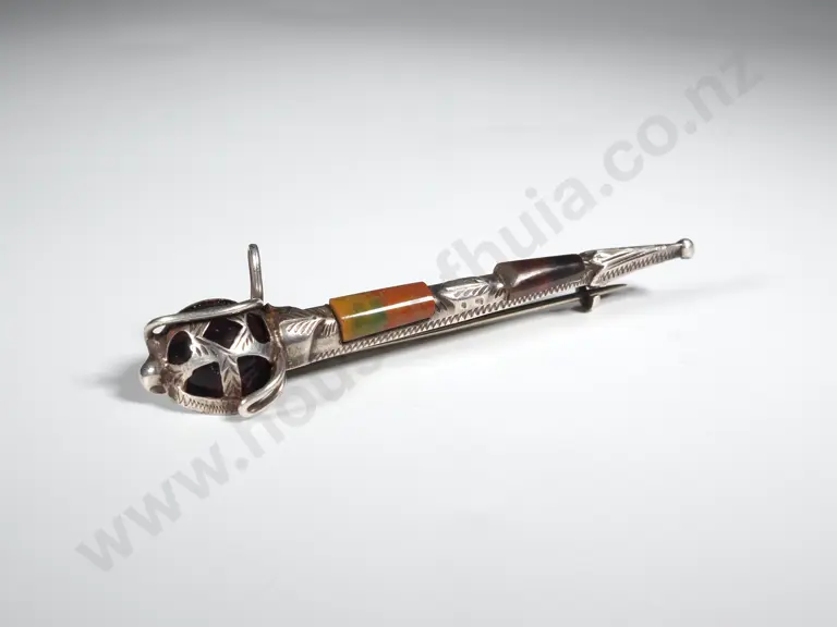 Fine Sterling Silver Scottish Agate Mounted Sword Brooch Estimate: $80 - $120