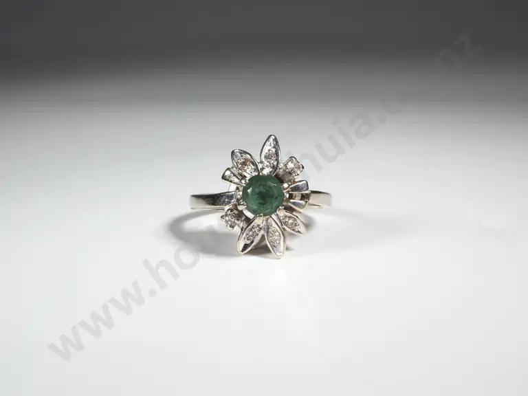 14ct White Gold Diamond & Emerald Ring Estimate: $400 - $600