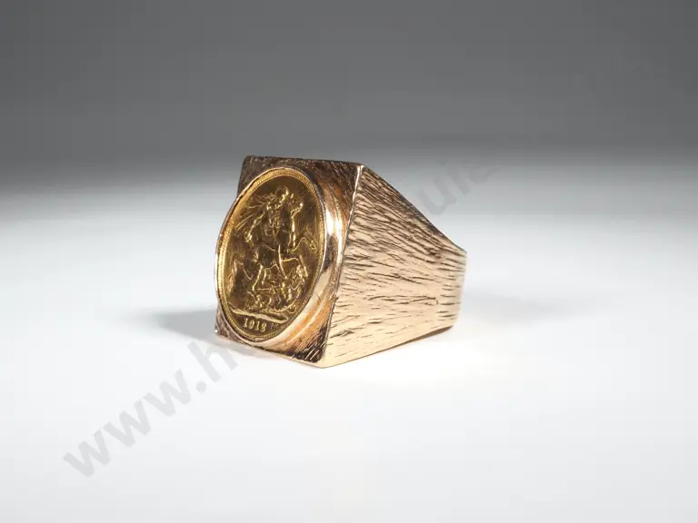 Large Full Sovereign Ring & Square 9ct Gold Mount Estimate: $2,800 - $3,200