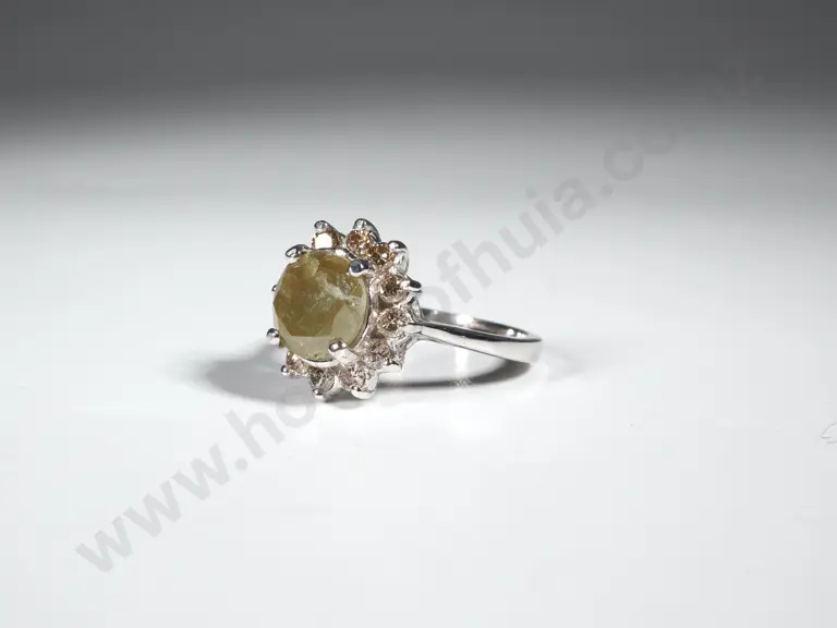 14ct White Gold Diamond & Olive Gem Ring Estimate: $500 - $1,000