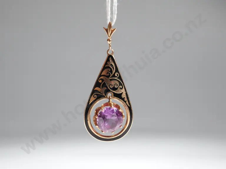 14ct Gold Amethyst Pendant w Black Enamel Estimate: $600 - $800