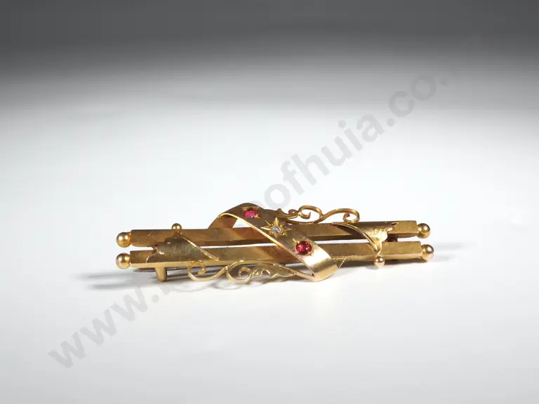 9ct Gold Diamond & Ruby Bar Brooch w English Hallmarks Estimate: $300 - $400