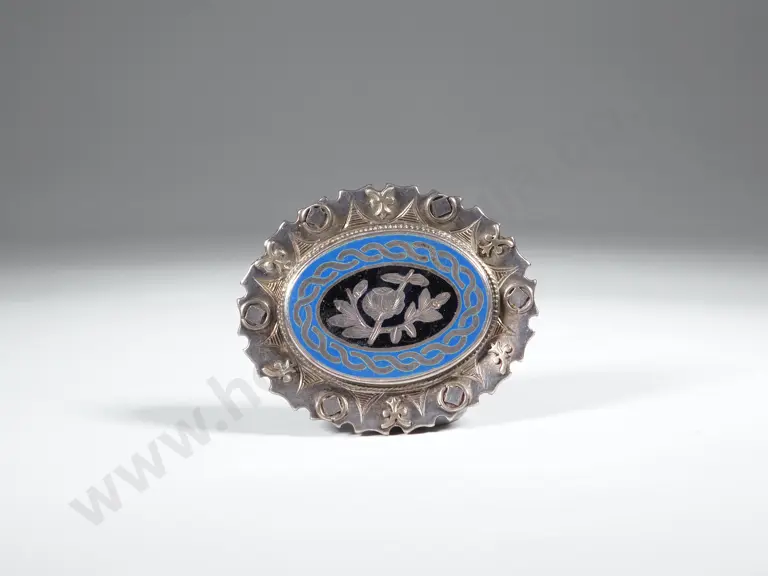 Sterling Silver Antique Oval Brooch With Blue & Black Enamel, English Hallmarks Estimate: $40 - $80