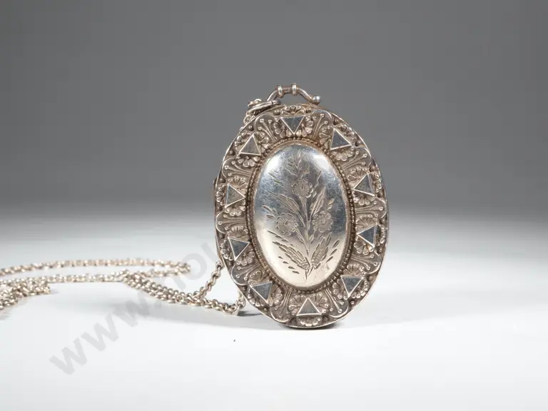 Sterling Silver Victorian Locket & Chain, English Hallmarks Estimate: $130 - $180