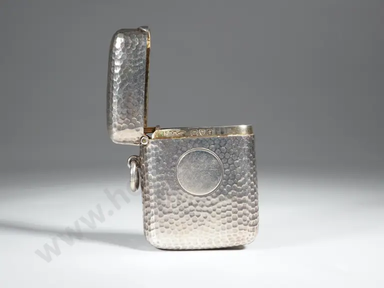 Heavy Sterling Silver Hammered Finished Vesta Case w Circular Cartouche Estimate: $100 - $200