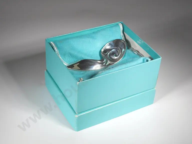 Tiffany and Co Sterling Silver Baby Spoon Rabbits Ear Handle & Swirl Bowl. Stamped Tiffany 925 Estimate: $100 - $200