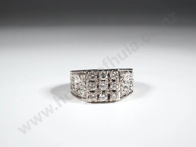 18ct White Gold 9 Diamond Ring w Filligree Shoulders Estimate: $1,100 - $1,400