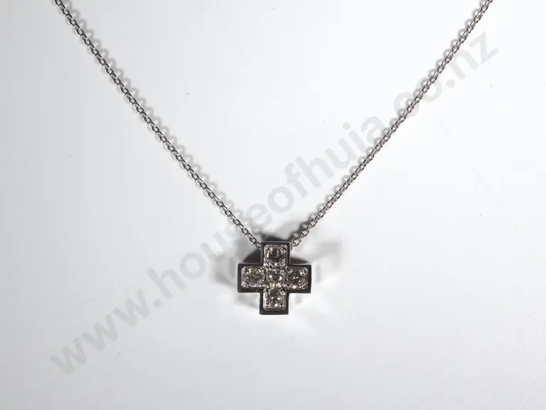 18ct White Gold Contemporary Diamond Pendant & Chain Estimate: $250 - $350