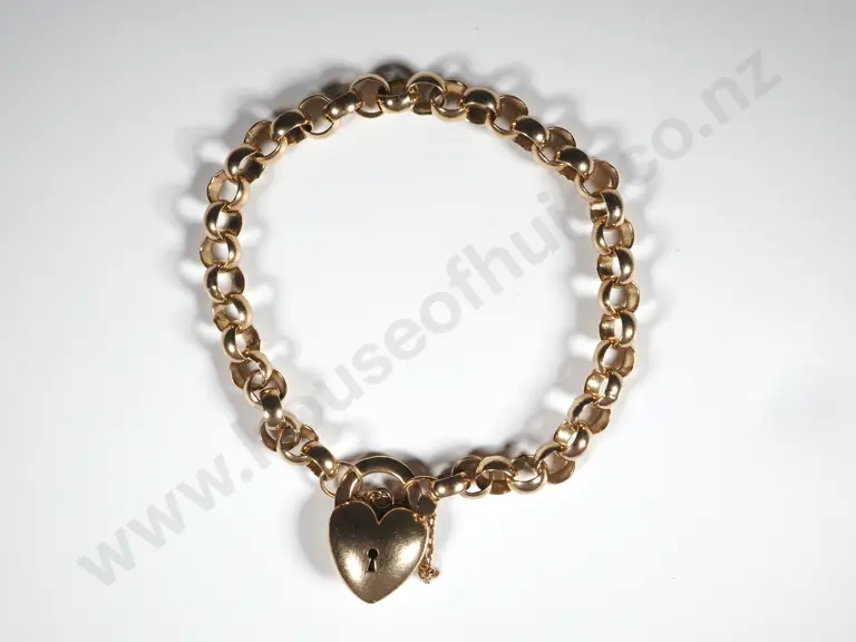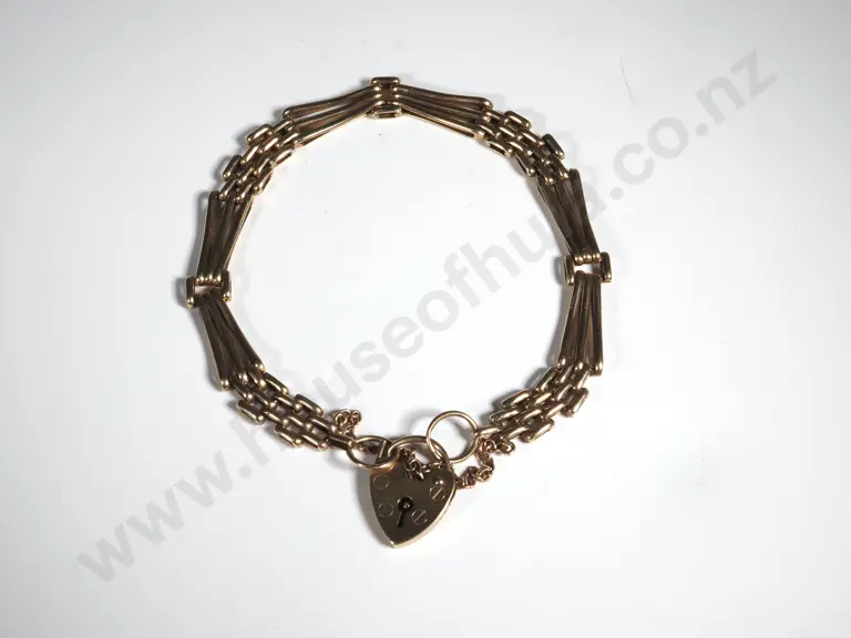 9ct Gold Vintage Gate Bracelet w Heart Padlock Estimate: $1,000 - $1,200