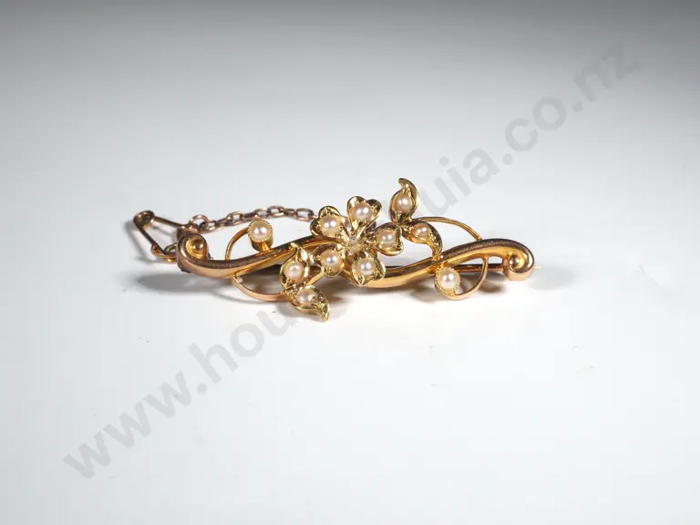 15ct Gold Floreat Art Nouveau Seed Pearl Bar Brooch Estimate: $300 - $500