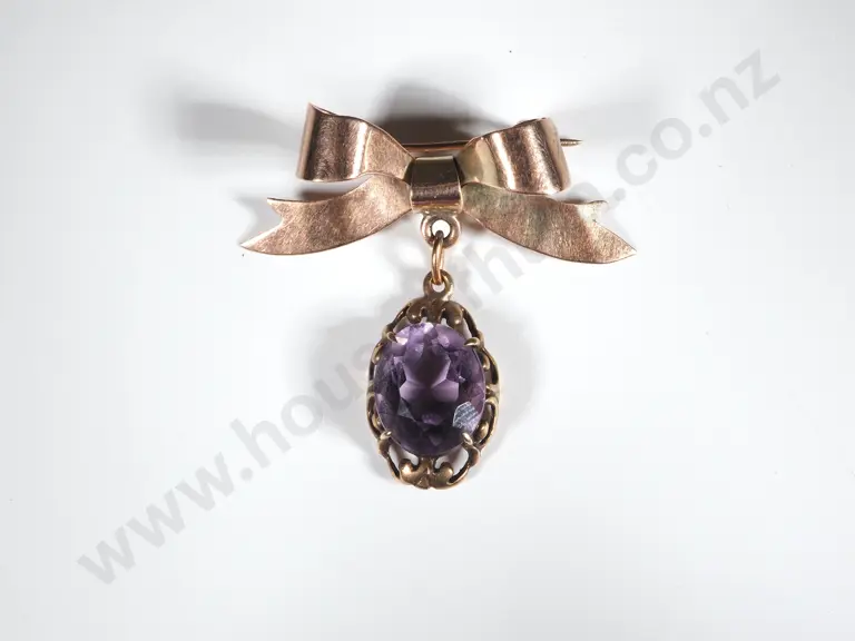 Antique Rose 9ct Gold & Amethyst Bow Brooch Estimate: $250 - $350