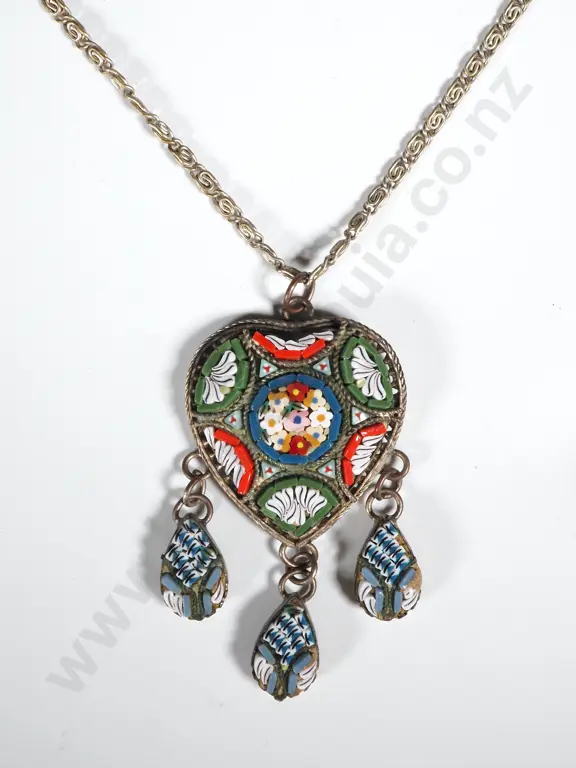 Vintage Mosaic Heart Shaped Pendant w Fancy Link Chain Estimate: $40 - $80