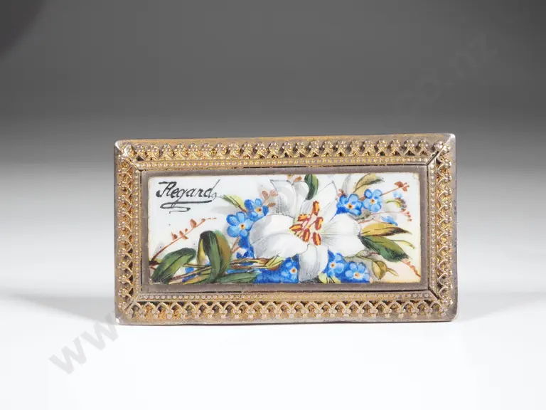 Ornate Sterling Silver Hand-painted Porcelain Brooch w Decorative Gallery Estimate: $80 - $120