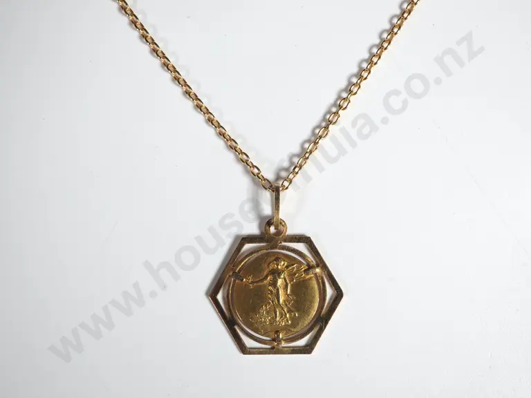18ct Gold Vintage Classical Female Figure Pendant w Gold Plated Silver Chain Estimate: $200 - $300