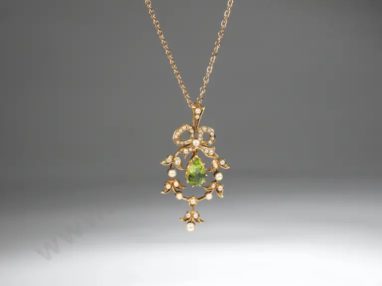 15ct Gold Art Nouveau Peridot & Seed Pearl Pendant in Antique Box Estimate: $600 - $800