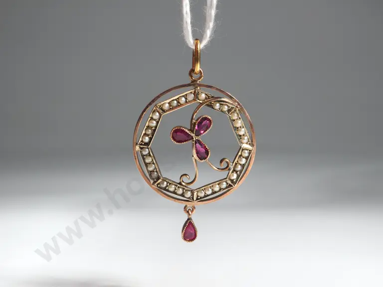 9ct Gold Edwardian Seed Pearl & Garnet Pendant in Antique Box Estimate: $200 - $300