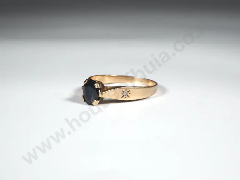 9ct Gold Sapphire Ring w Diamond Shoulder Accents Estimate: $150 - $250