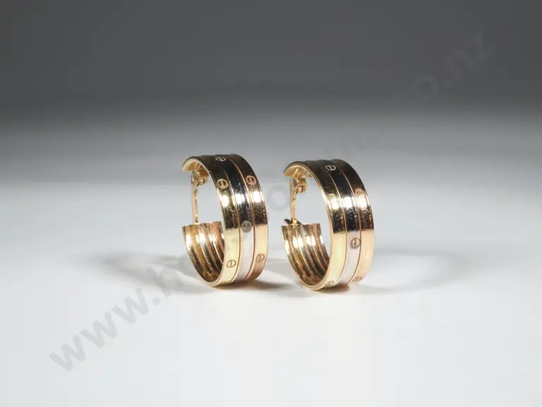18ct Gold Tri-Colour Hoop Earrings, Cartier Style Estimate: $300 - $500