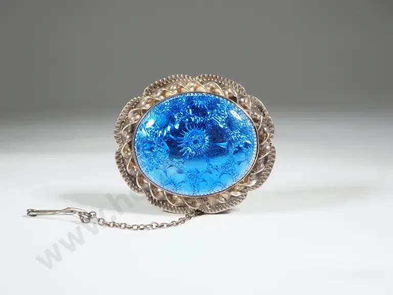 Vintage Sterling Silver Blue Enamel Oval Brooch Estimate: $50 - $100