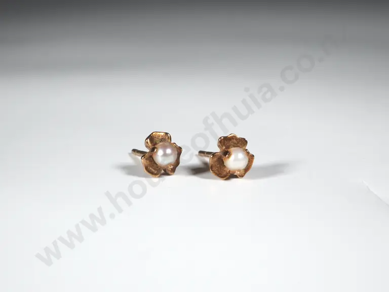 9ct Gold Floral Studs Set w Seed Pearls Estimate: $80 - $150