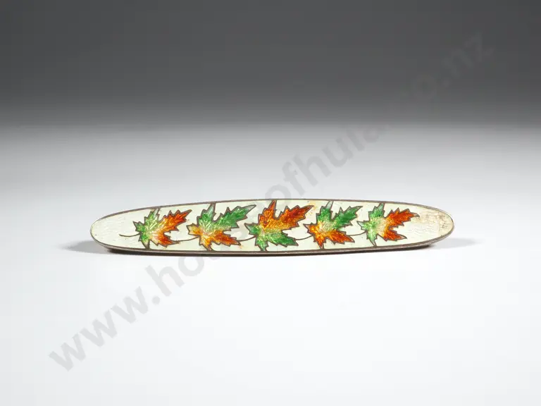 Sterling Silver Guilloche Enamel Bar Brooch Decorated w Maple Leaves. Estimate: $40 - $80