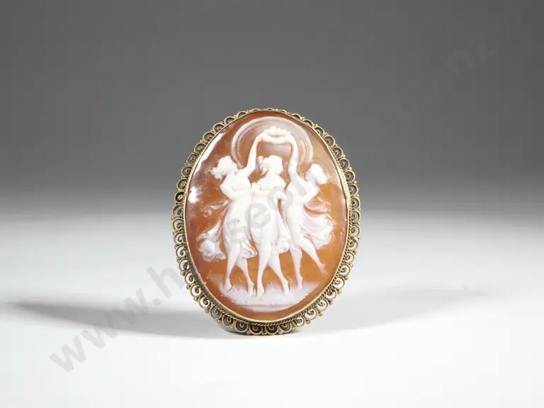 Gilt Framed Oval Cameo Brooch Depicting Three Graces Estimate: $100 - $200