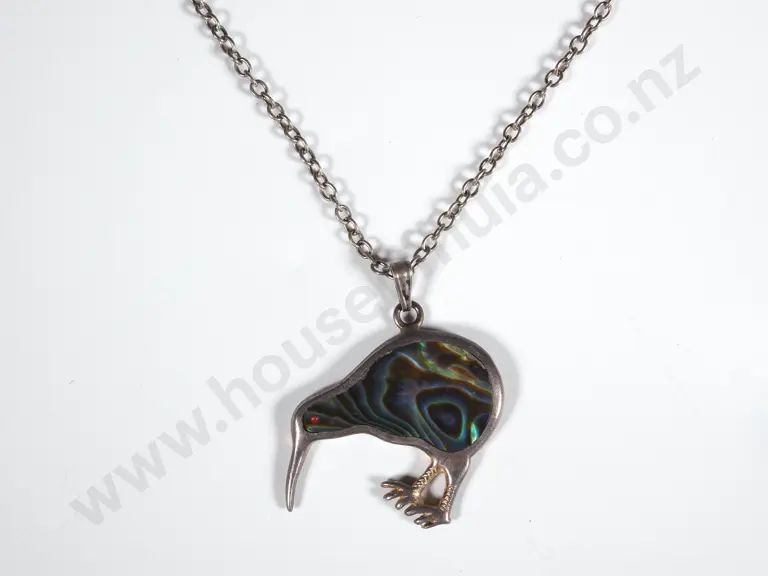 Sterling Silver & Paua Shell Kiwi Pendant On Chain Estimate: $40 - $80