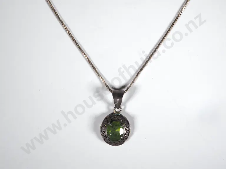 Sterling Silver & Greenstone Locket On Chain Estimate: $50 - $100