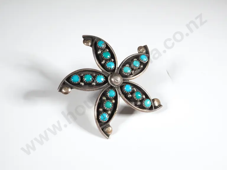 Sterling Silver & Turquoise Brooch in the Form of a Flower Estimate: $40 - $60